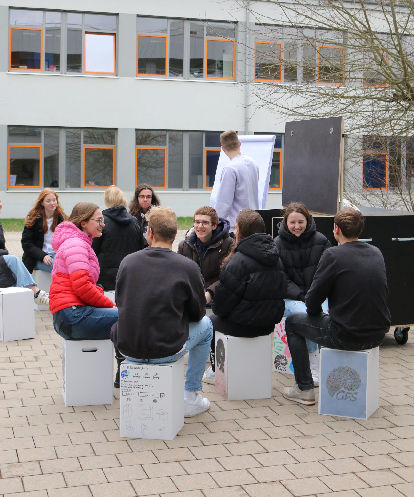 Wir als P-Seminar des Gymnasiums Fränkische Schweiz haben uns als kleine Gruppe von Schülern 18 Monate lang damit beschäftigt, wie ein perfekter Raum für Kommunikation aussehen soll. Natürlich haben wir unseren Fokus auf positive Einflüsse, die zu einer angenehmen Arbeitsatmosphäre und guter Zusammenarbeit beitragen, gelegt.